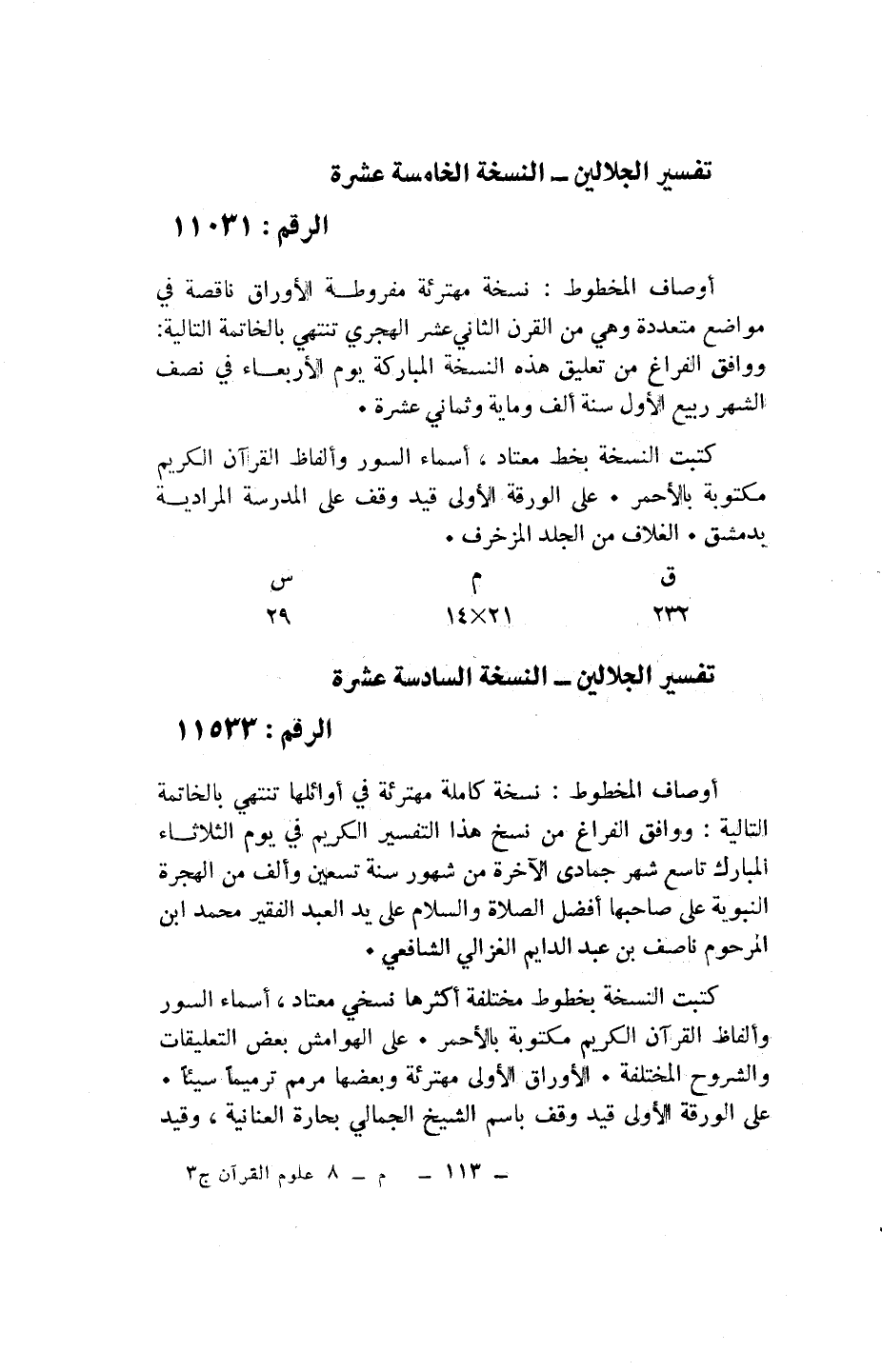تفسير الجلالين- النسخة الخامسة عشرة- الرقم: 11031