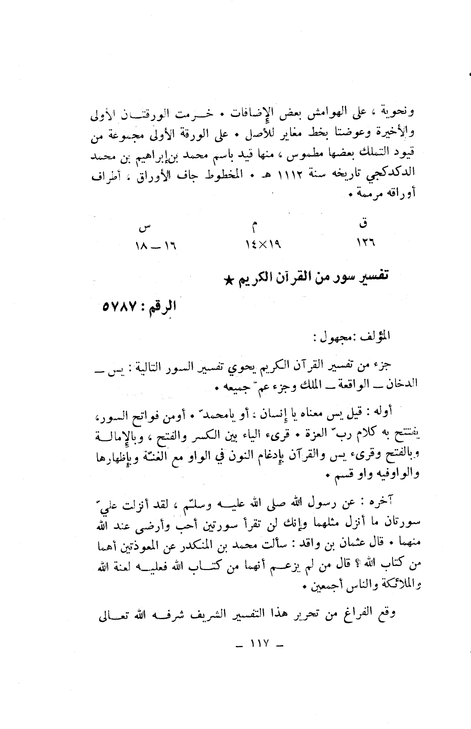 جزء من تفسير القرآن الكريم يحوي تفسير السور التالية: يس- الدخان- الواقعة- الملك وجزء عمّ جميعه.