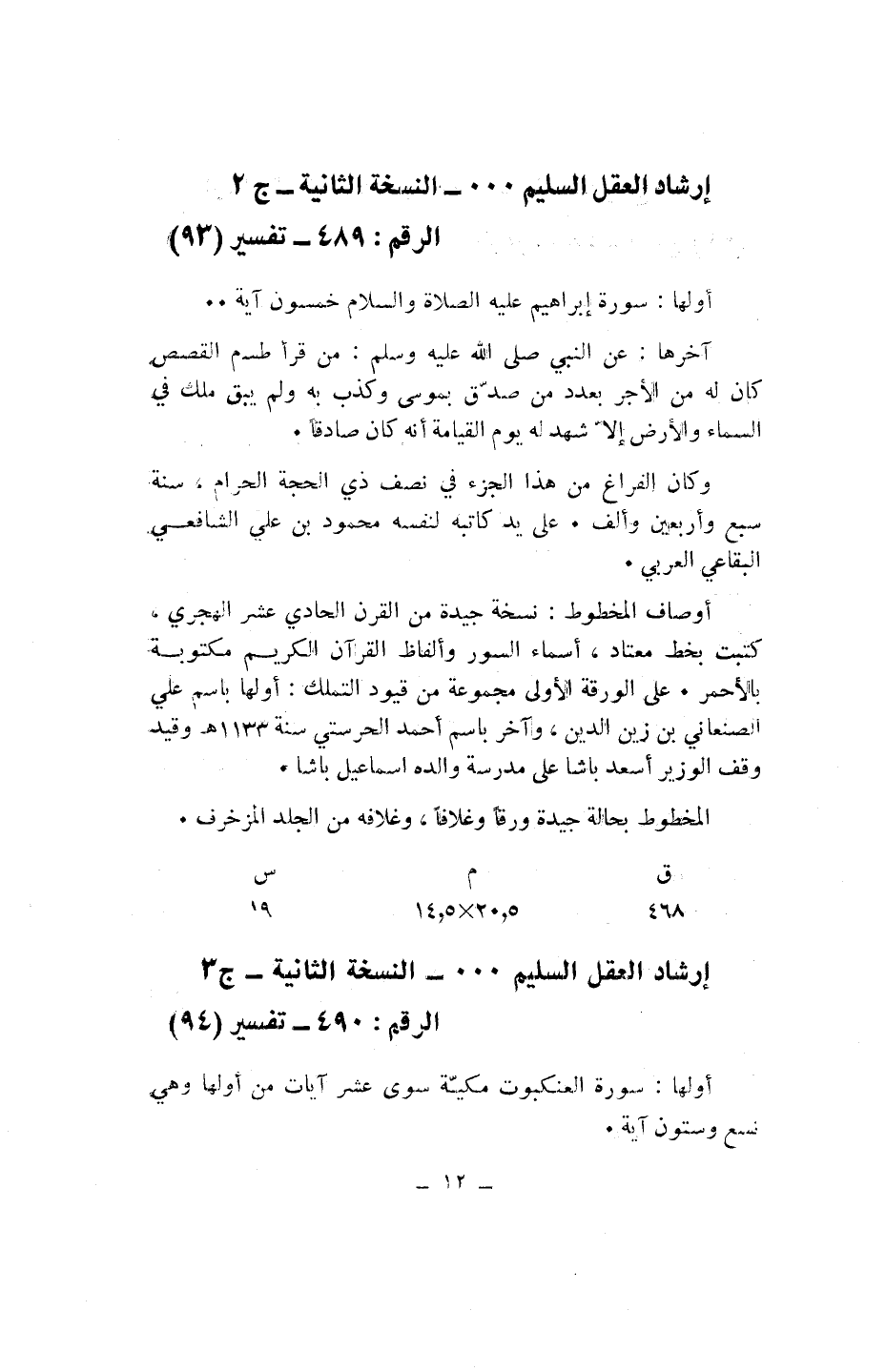 إرشاد العقل السليم ... - النسخة الثانية- ج 2 الرقم: 489 - تفسير (93)