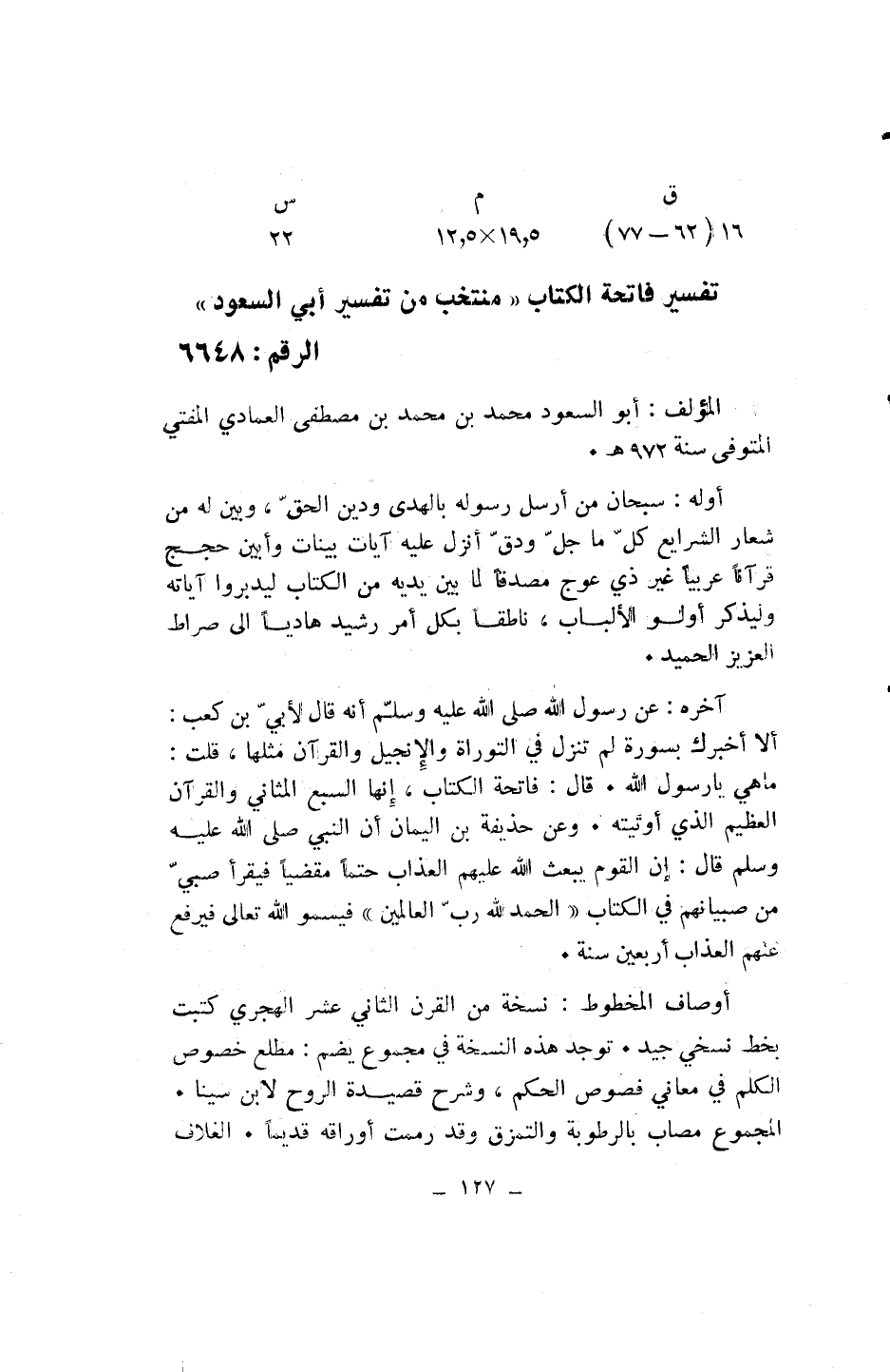 تفسير فاتحة الكتاب «منتخب من تفسير أبي السعود» الرقم: 6648