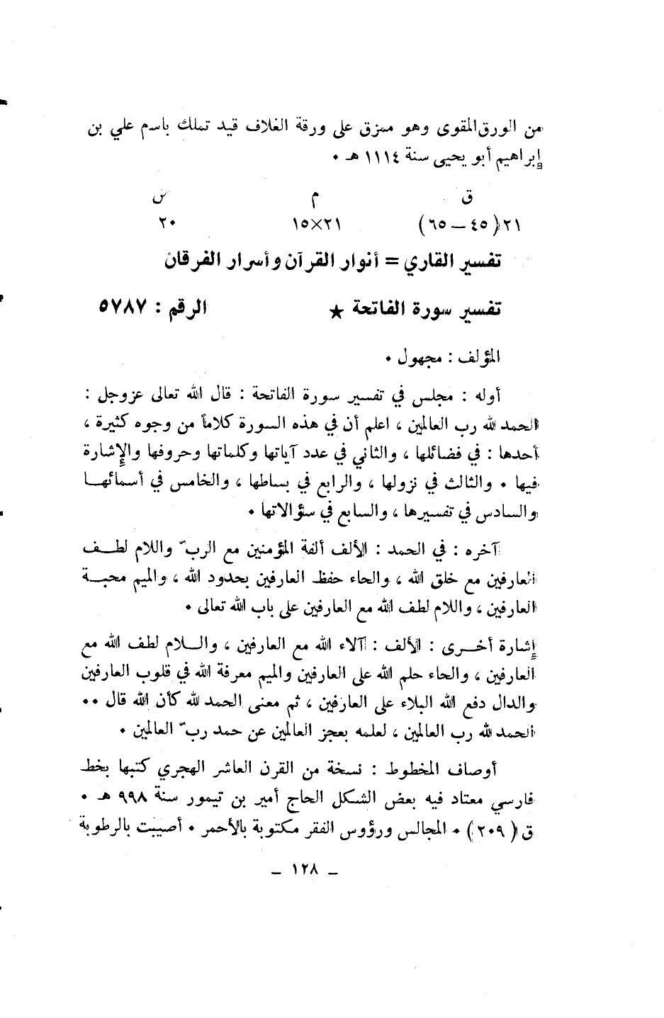 تفسير القاري أنوار القرآن وأسرار الفرقان تفسير سورة الفاتحة* الرقم: 5787