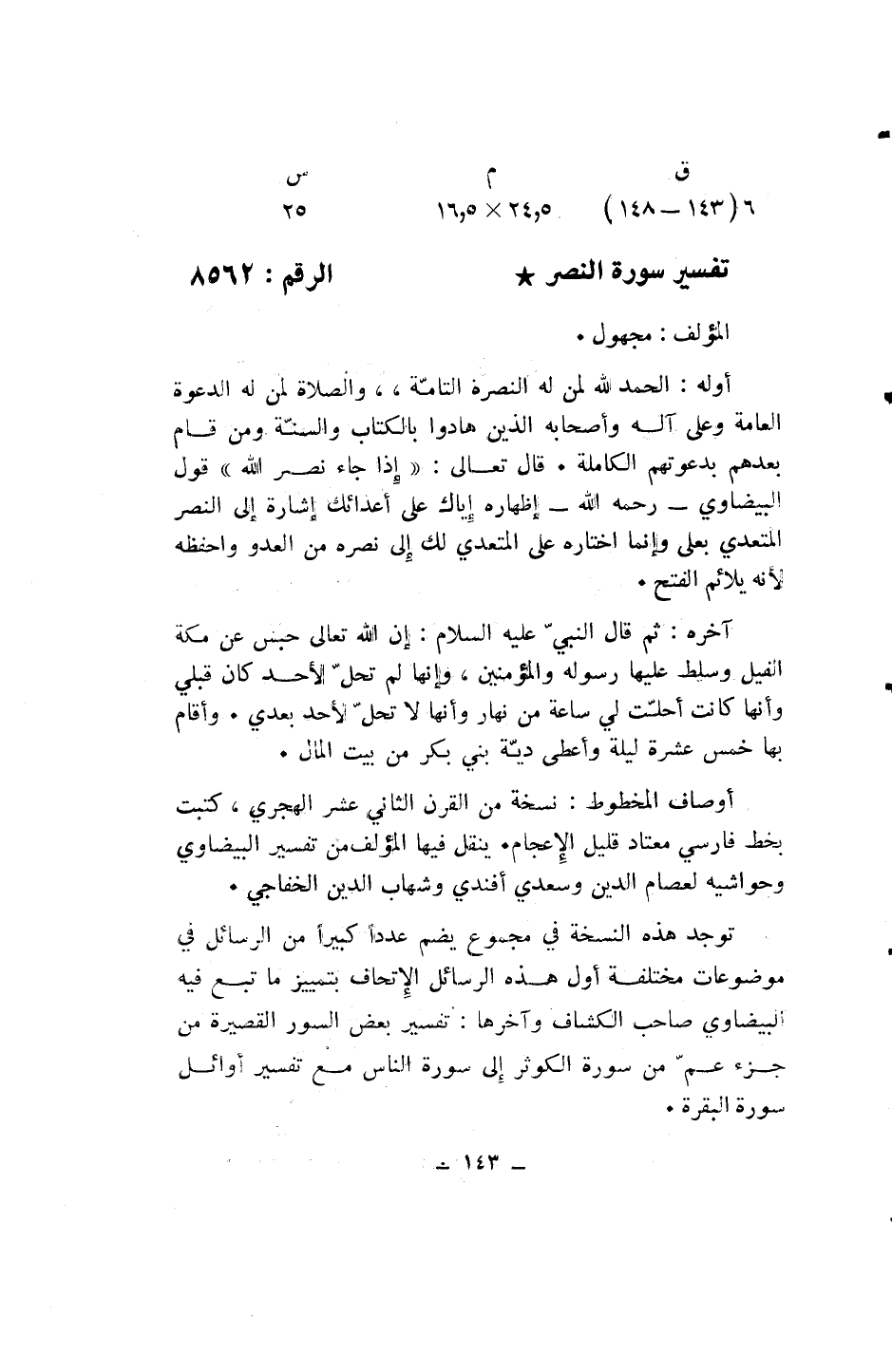 (ق 6 (143 - 148) / م 5، 24* 5، 16/ س 25)