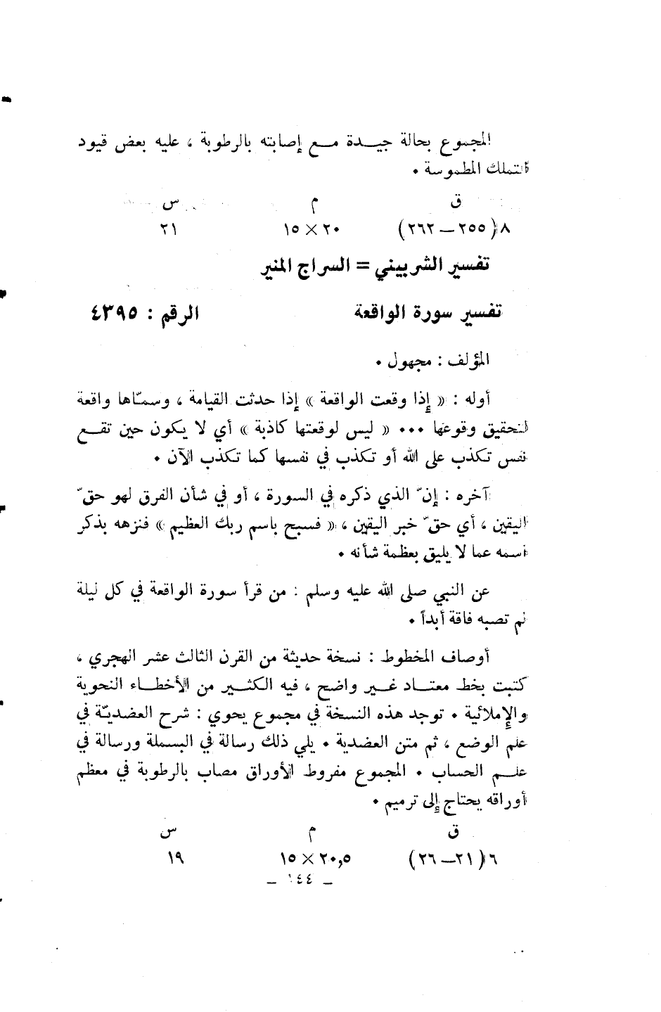 تفسير الشربيني السراج المنير تفسير سورة الواقعة الرقم: 4395