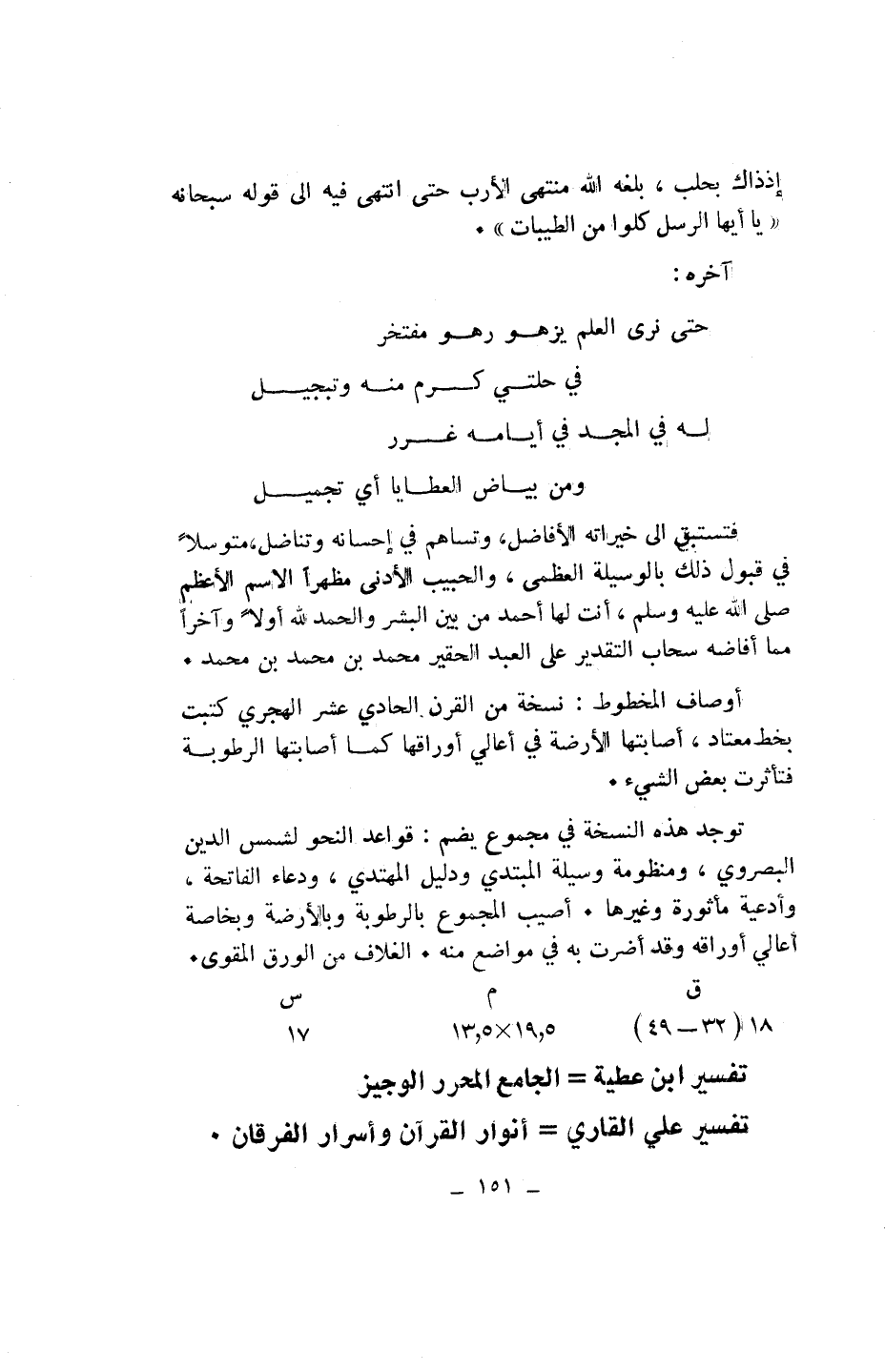 تفسير ابن عطية الجامع المحرر الوجيز تفسير علي القاري أنوار القرآن وأسرار الفرقان. تفسير الغزي- أرجوزة الرقم: 4699