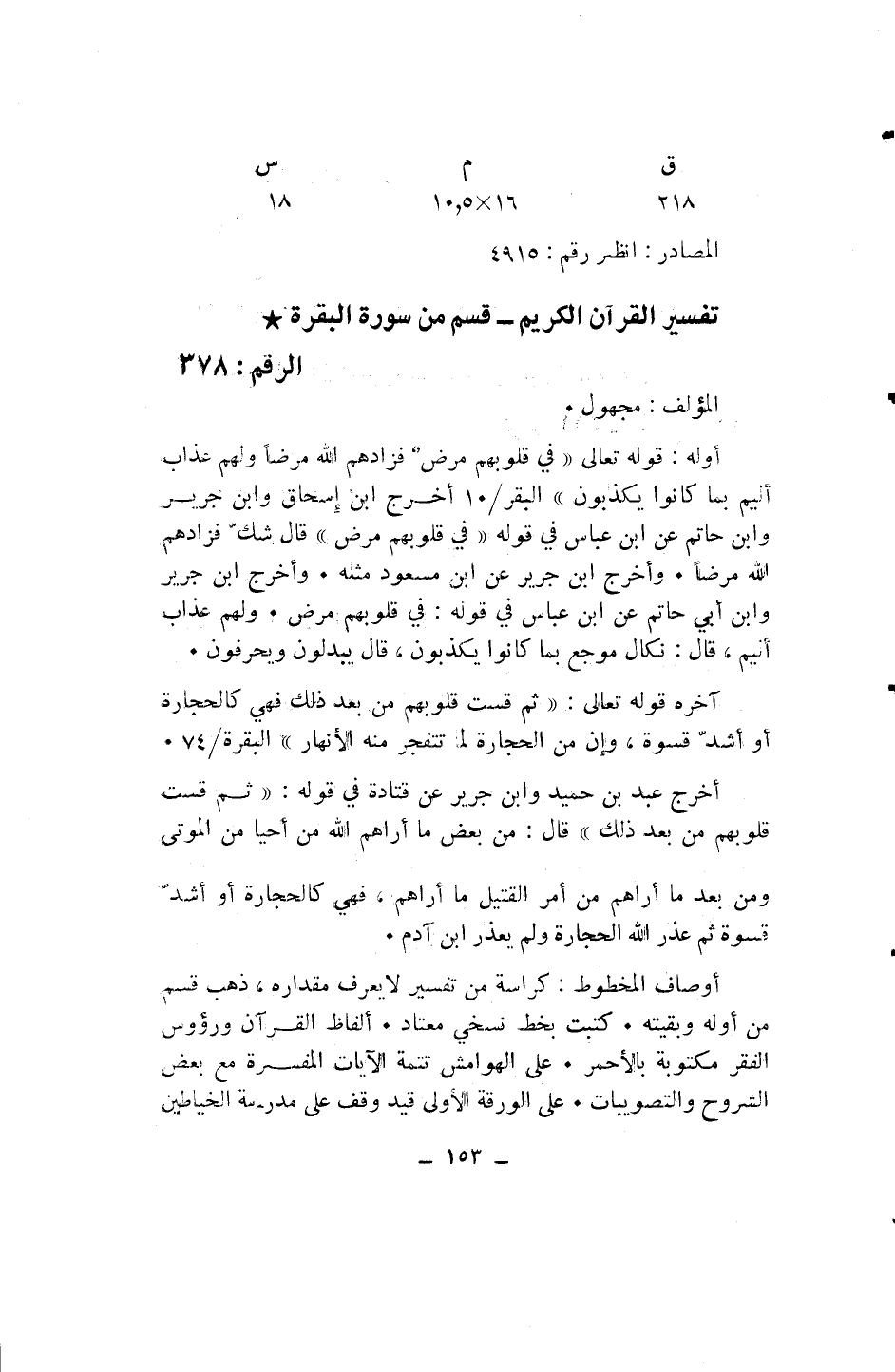 (ق 218/ م 16* 5، 10/ س 18) المصادر: انظر رقم: 4915