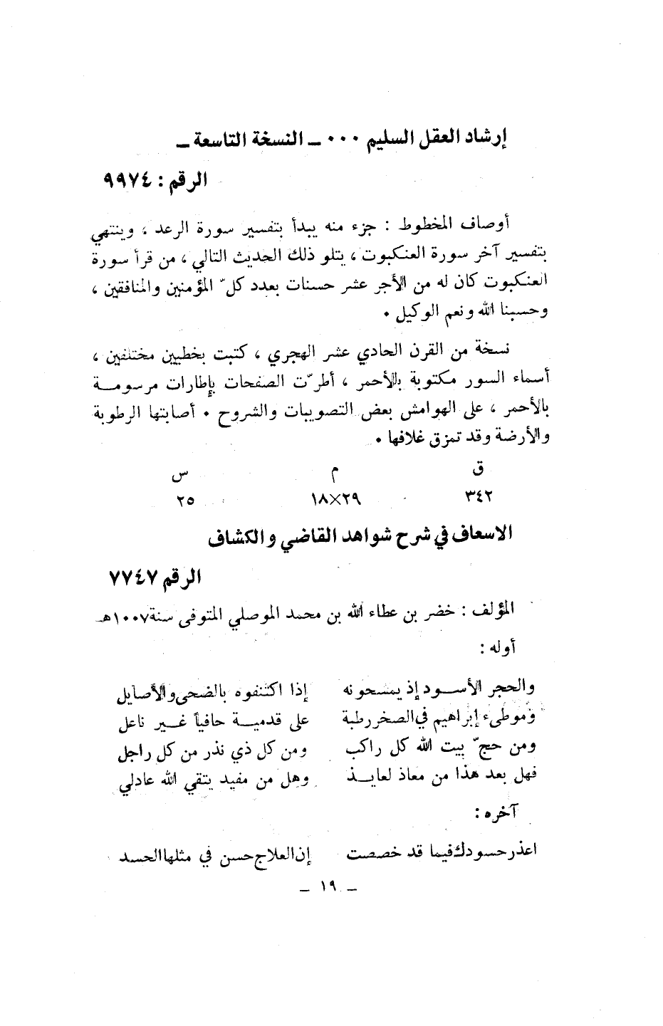 إرشاد العقل السليم ... - النسخة التاسعة- الرقم: 9974