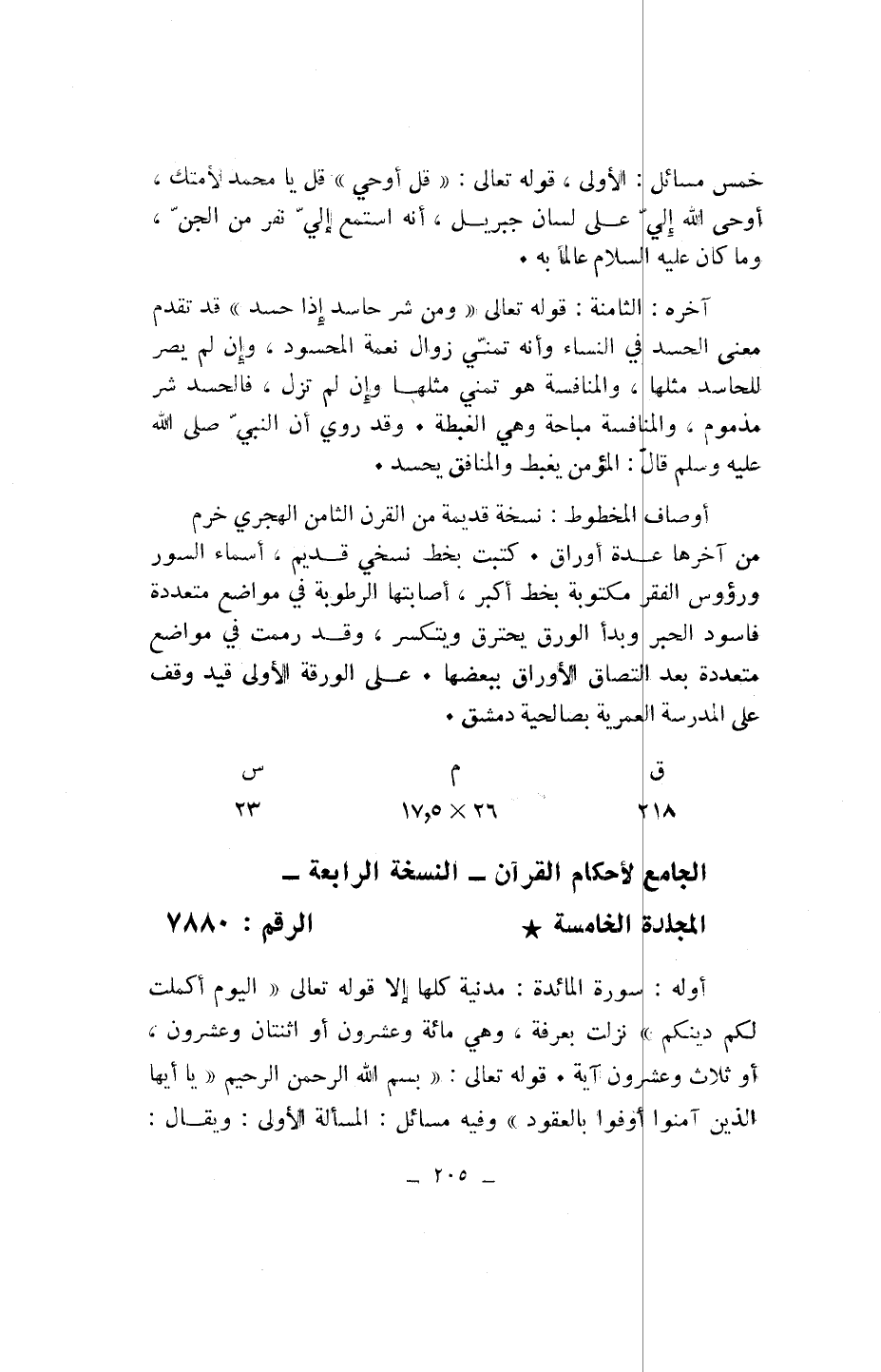 الجامع لأحكام القرآن- النسخة الرابعة- المجلدة الخامسة* الرقم: 7880