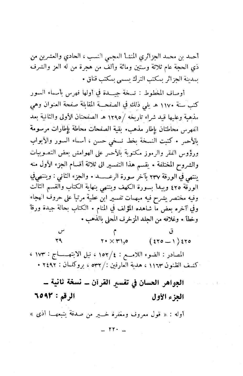 الجواهر الحسان في تفسير القرآن- نسخة ثانية- الجزء الأول الرقم: 6593
