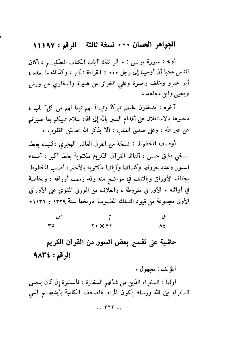 الجواهر الحسان ... نسخة ثالثة الرقم: 11197