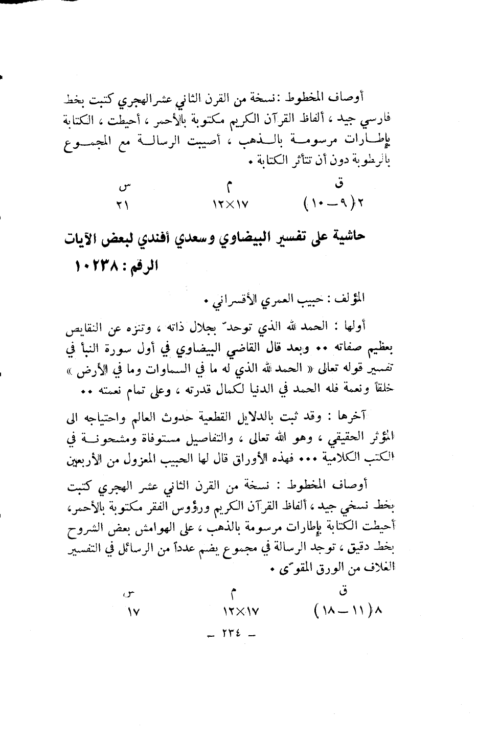 حاشية على تفسير البيضاوي وسعدي أفندي لبعض الآيات الرقم: 10238