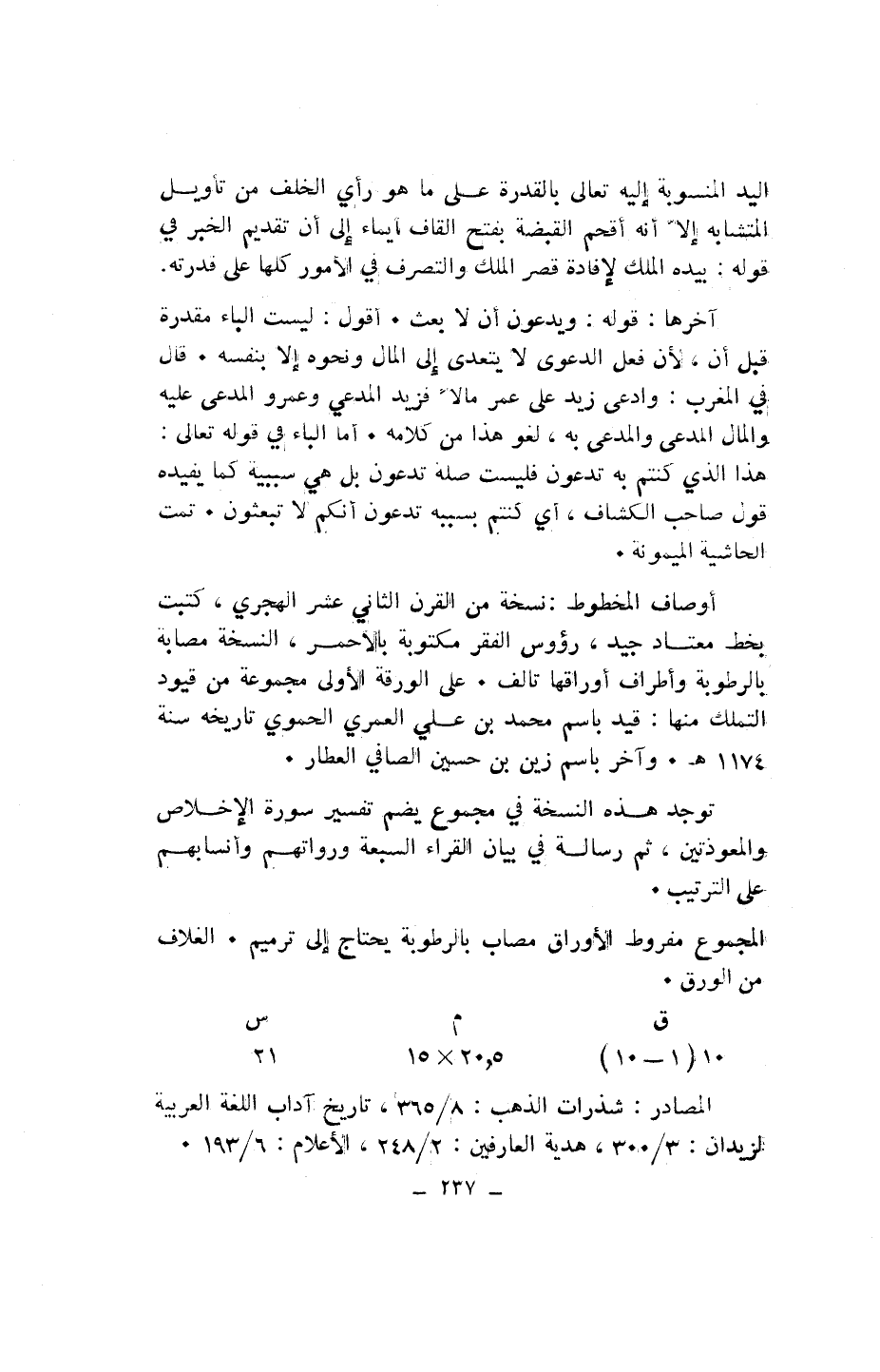 (ق 10 (1 - 10) / م 5، 20* 15/ س 21) المصادر: شذرات الذهب: 8/ 365، تاريخ آداب اللغة العربية لزيدان: 3/ 300، هدية العارفين: 2/ 248، الأعلام: 6/ 193.