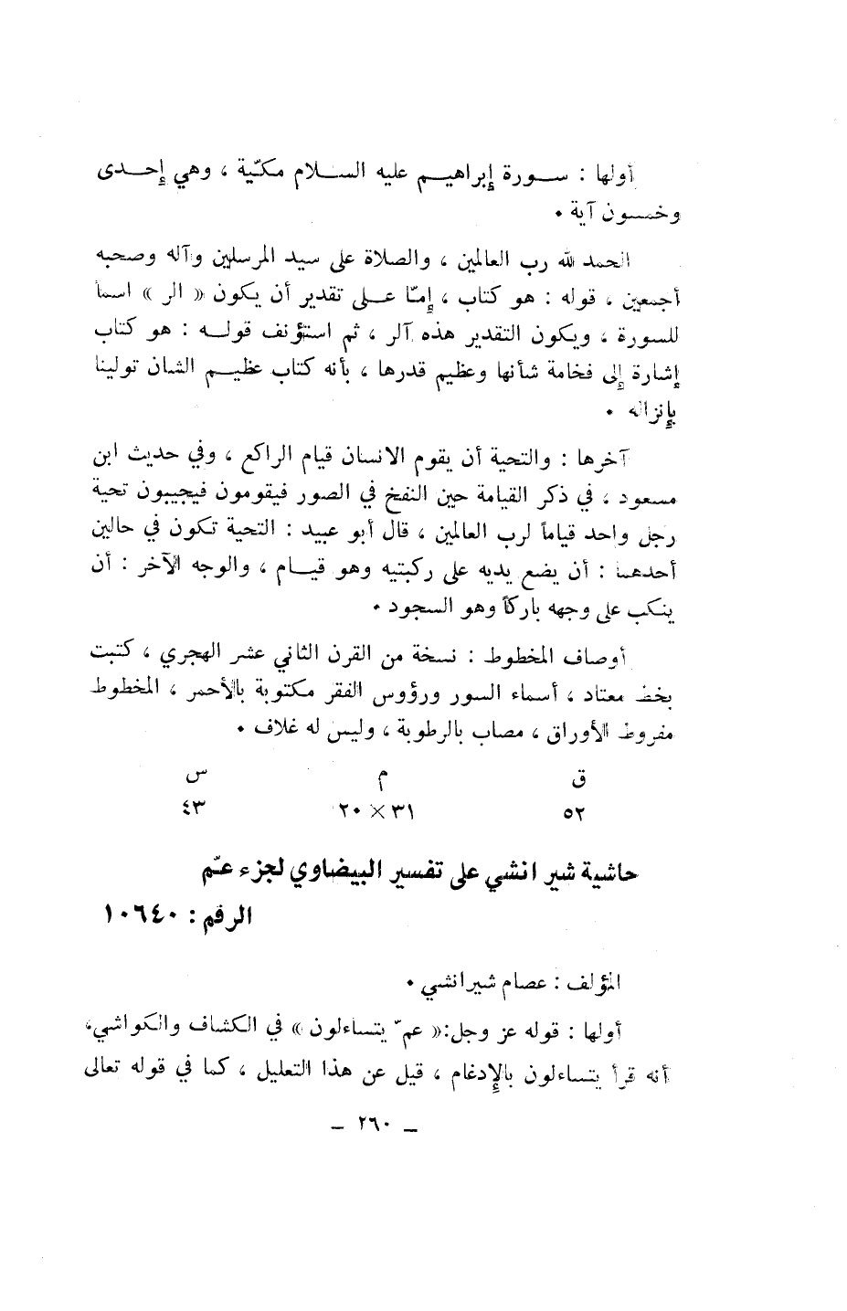 حاشية شيرانشي على تفسير البيضاوي لجزء عمّ الرقم: 10640