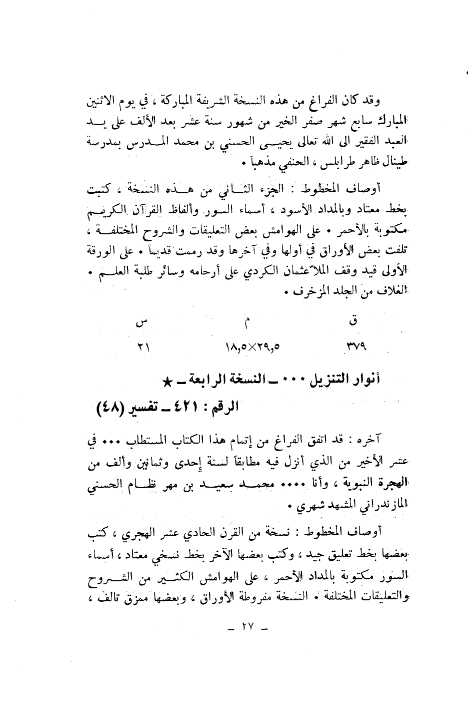 أنوار التنزيل ... - النسخة الرابعة-* الرقم: 421 - تفسير (48)