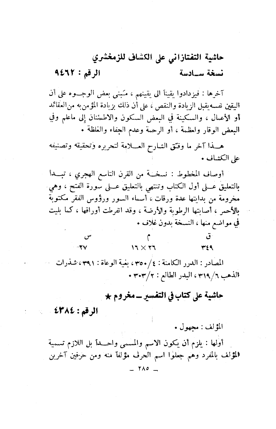 حاشية التفتازاني على الكشاف للزمخشري نسخة سادسة الرقم: 9462