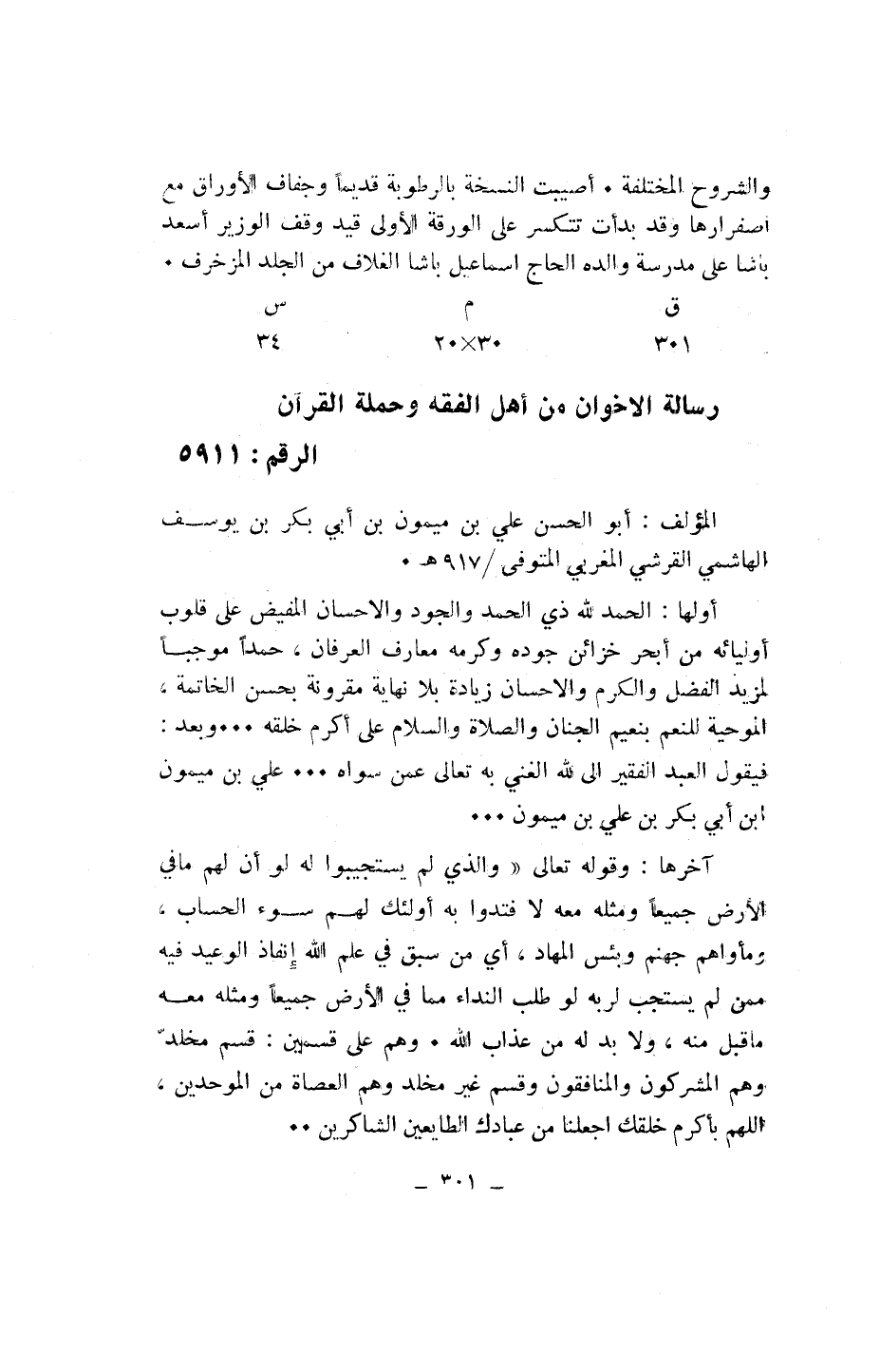 رسالة الاخوان من أهل الفقه وحملة القرآن الرقم: 5911