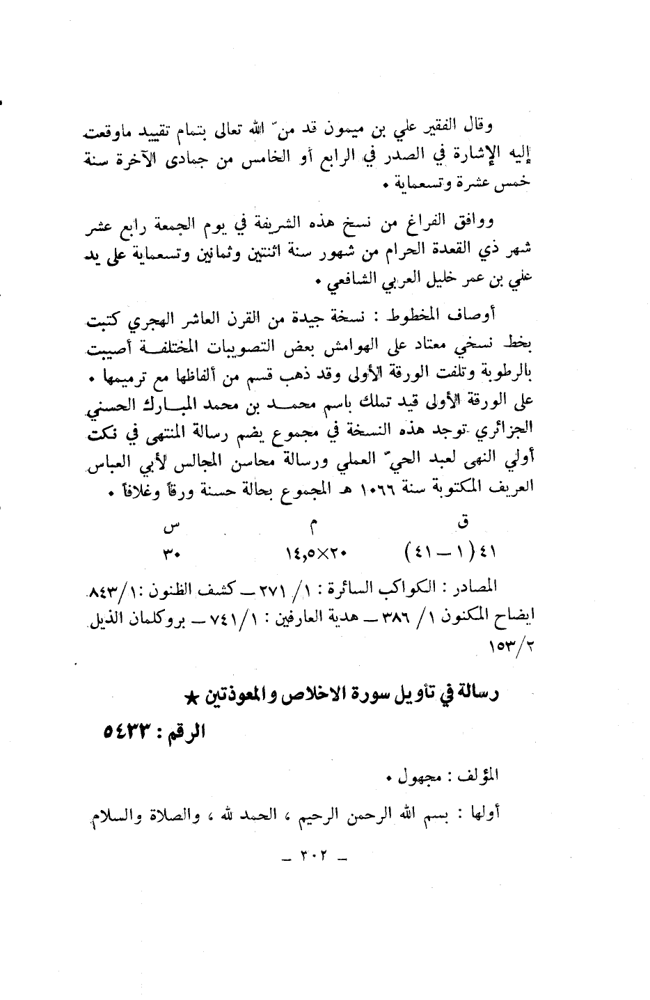 رسالة في تأويل سورة الاخلاص والمعوذتين* الرقم: 5433