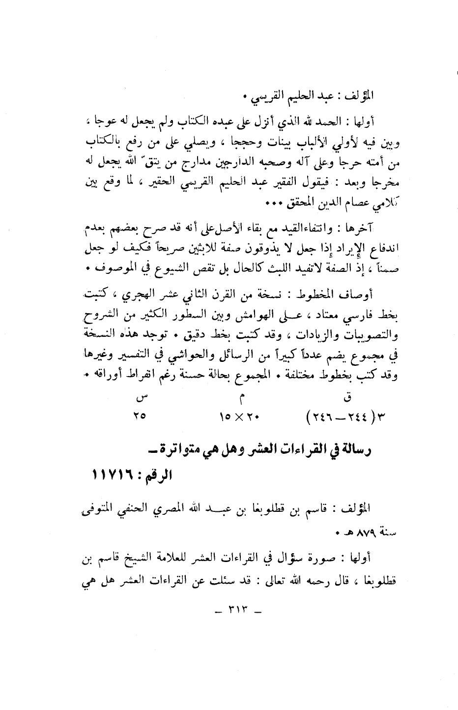 رسالة في القراءات العشر وهل هي متواترة- الرقم: 11716