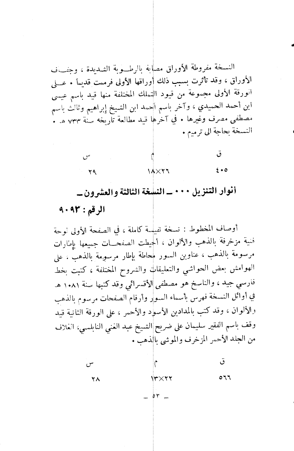 أنوار التنزيل ... - النسخة الثالثة والعشرون- الرقم: 9093