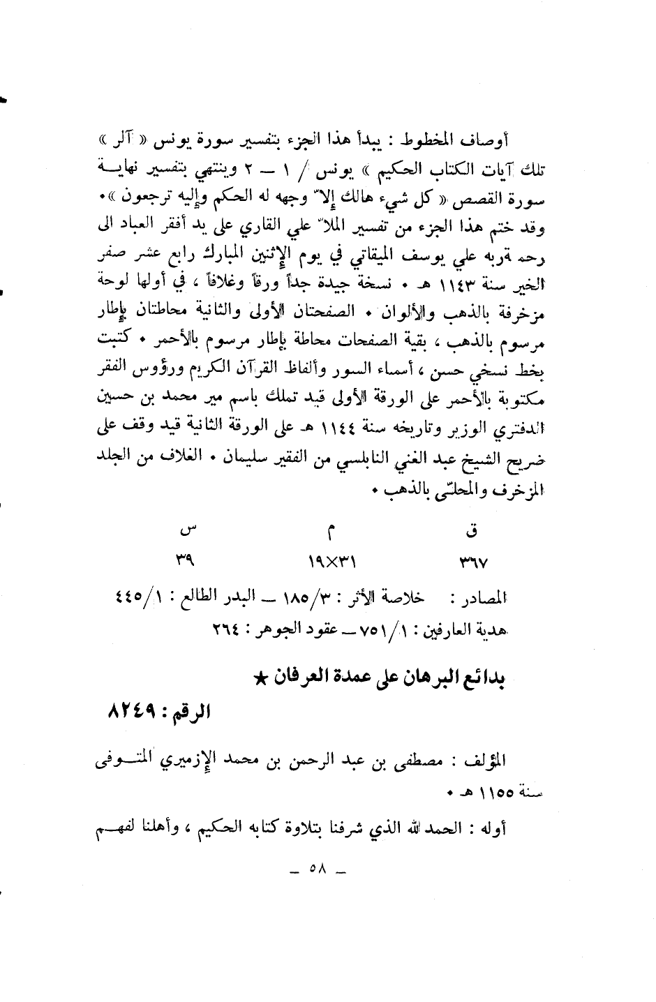 بدائع البرهان على عمدة العرفان* الرقم: 8249
