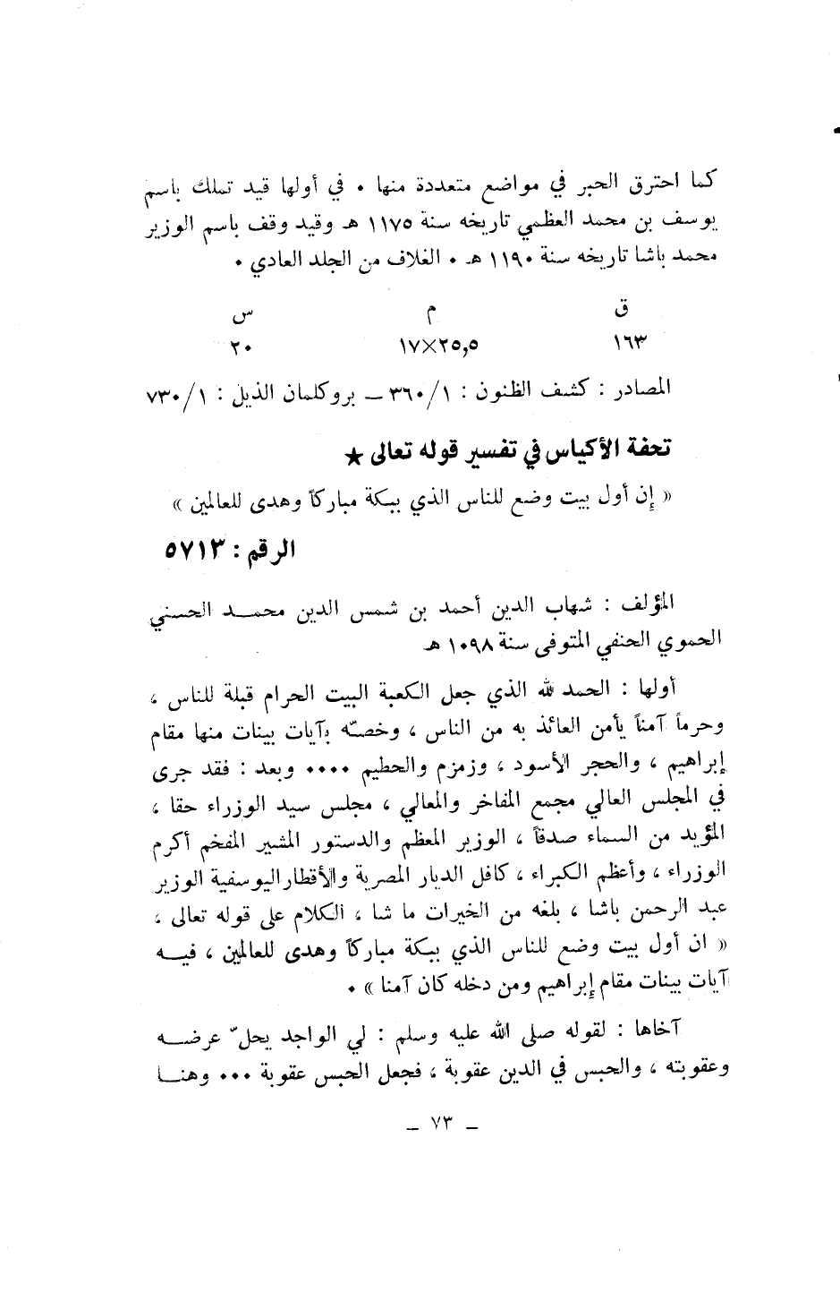 (ق 163/ م 5، 25* 17/ س 20) المصادر: كشف الظنون: 1/ 360 - بروكلمان الذيل: 1/ 730