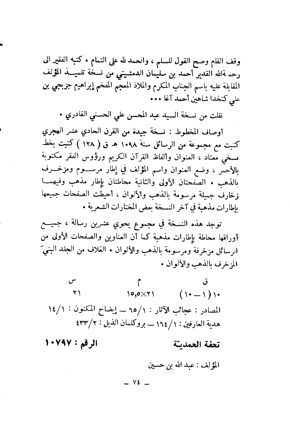 تحفة الحمديّة الرقم: 10797