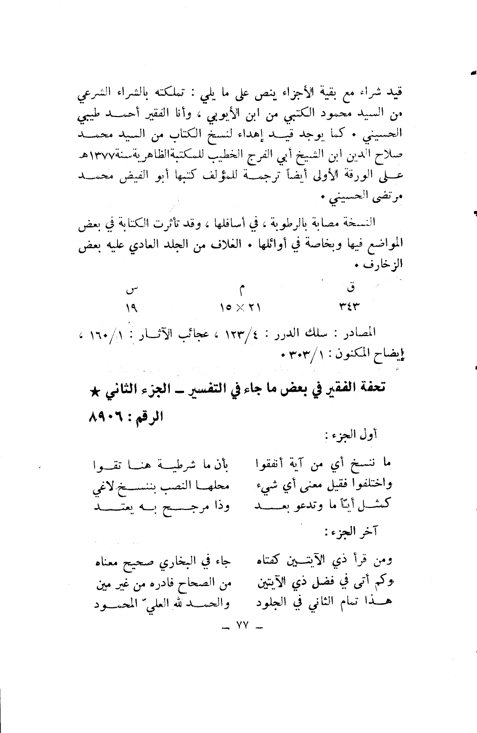 تحفة الفقير في بعض ما جاء في التفسير- الجزء الثاني* الرقم: 8906