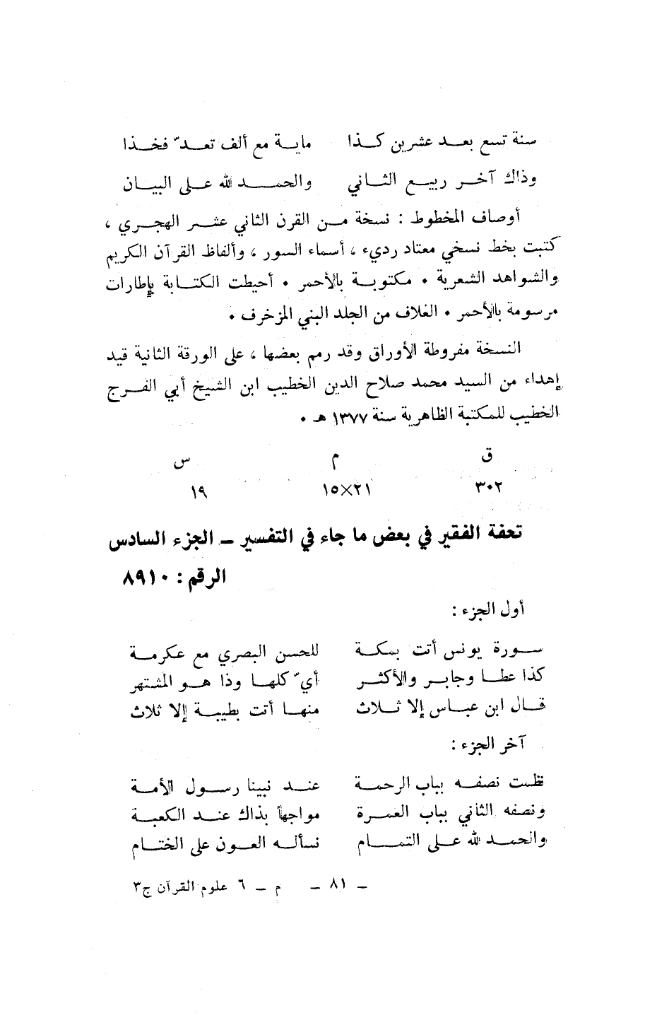 تحفة الفقير في بعض ما جاء في التفسير- الجزء السادس الرقم: 8910