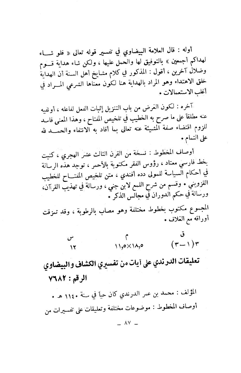 تعليقات الدرندي على آيات من تفسيري الكشاف والبيضاوي الرقم: 7682