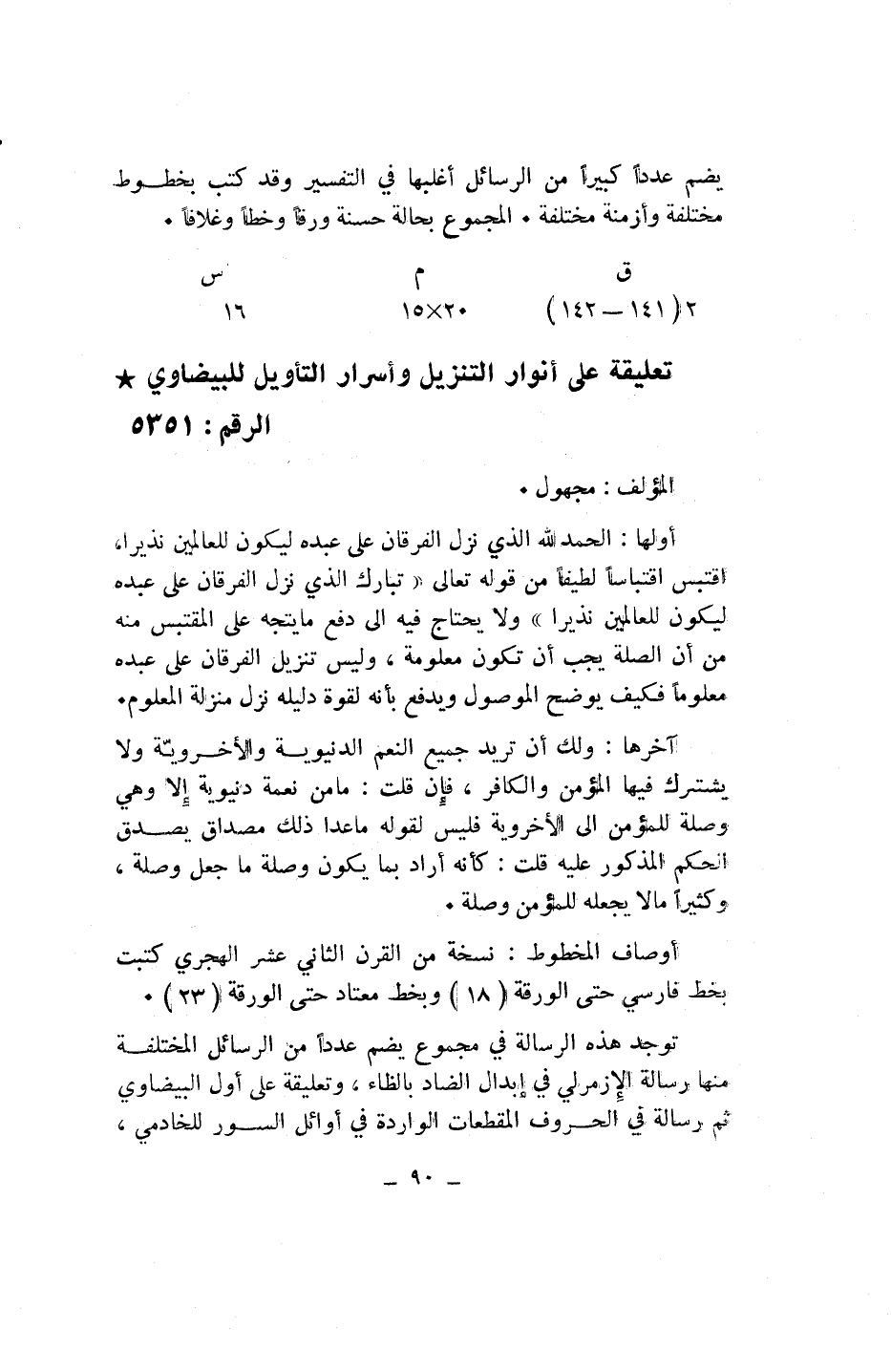 تعليقة على أنوار التنزيل وأسرار التأويل للبيضاوي* الرقم: 5351