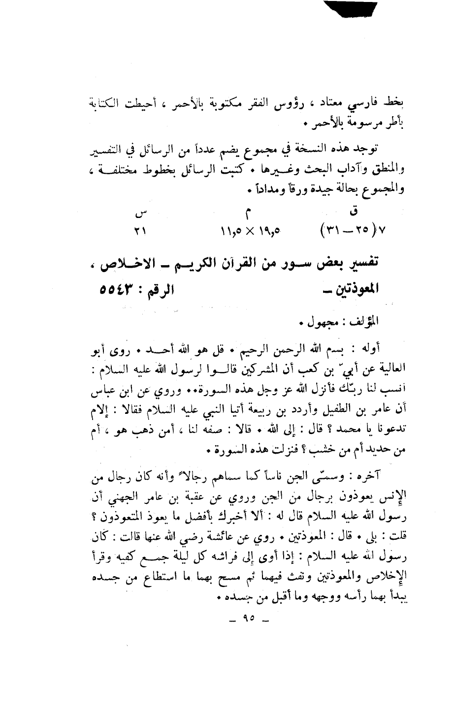 تفسير بعض سور من القرآن الكريم- الاخلاص، المعوذتين- الرقم: 5543