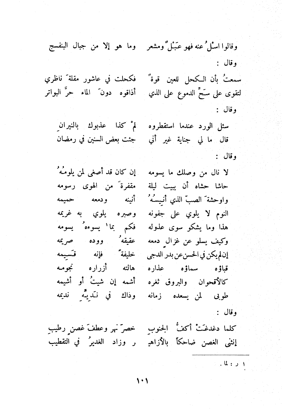 وقالوا اسل عنه فهو عبل ومشعر ... وما هو إلا من جبال البنفسج وقال: