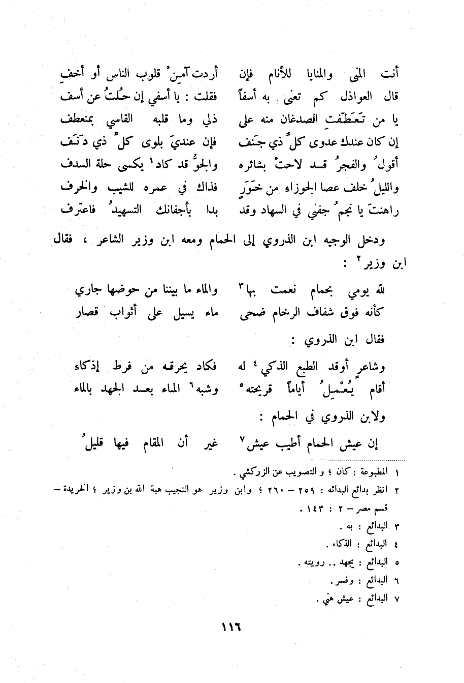راهنت يا نجم جفني في السهاد وقد ... بدا بأجفانك التسهيد فاعترف ودخل الوجيه ابن الذروي إلى الحمام ومعه ابن وزير الشاعر، فقال ابن وزير (2) :