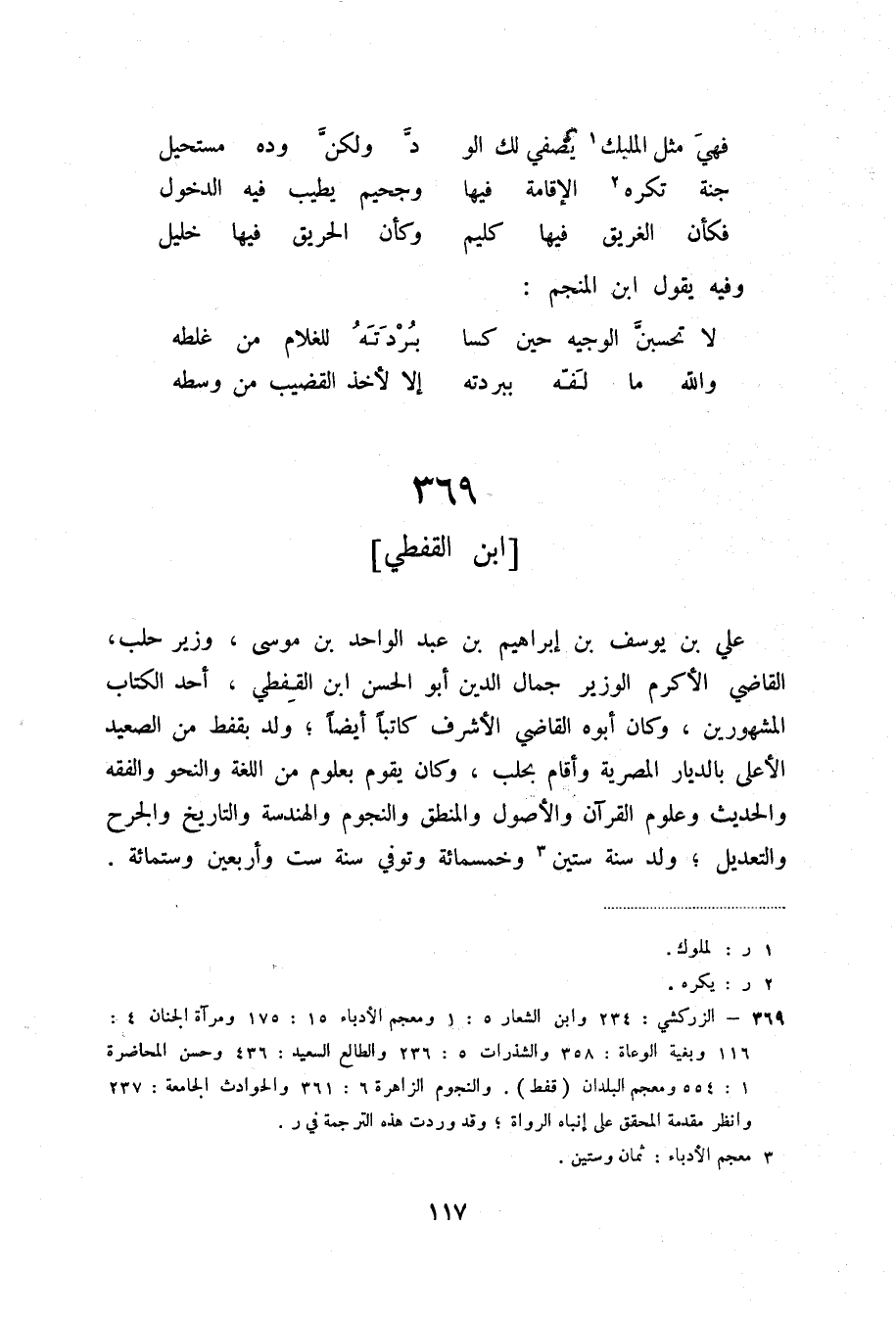 (3) الزركشي: 234 وابن الشعار 5: 1 ومعجم الأدباء 15: 175 ومرآة الجنان 4: 116 وبغية الوعاة: 358 والشذرات 5: 236 والطالع السعيد: 436 وحسن المحاضرة 1: 554 ومعجم البلدان (فقط) . والنجوم الزاهرة 6: 361 والحوادث الجامعة: 237 وانظر مقدمة المحقق على إنباه الرواة؛ وقد وردت هذه الترجمة في ر.