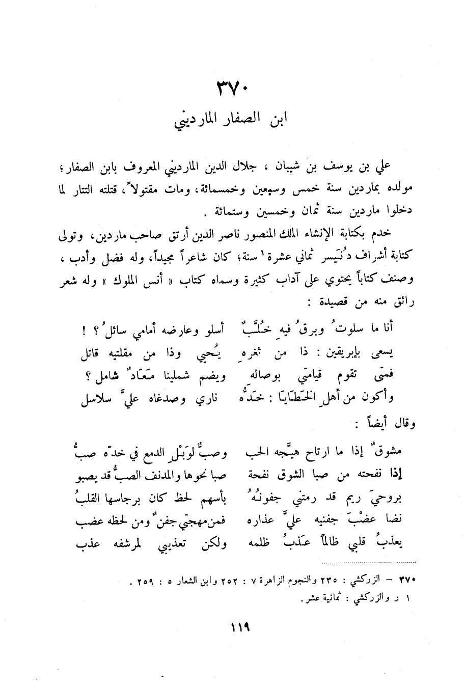 (1) الزركشي: 235 والنجوم الزاهرة 7: 252 وابن الشعار 5: 259.