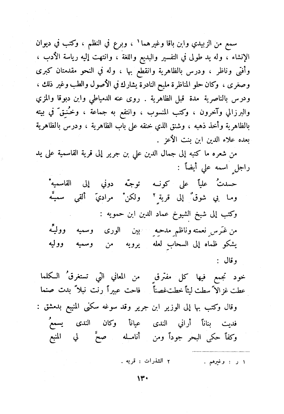 عطت غزالاً سطت ليثاً خطت غصناً ... فاحت عبيراً رنت نبلاً بدت صنما وقال وكتب بها إلى الوزير ابن جرير وقد سوغه سكنى المنيبع بدمشق: