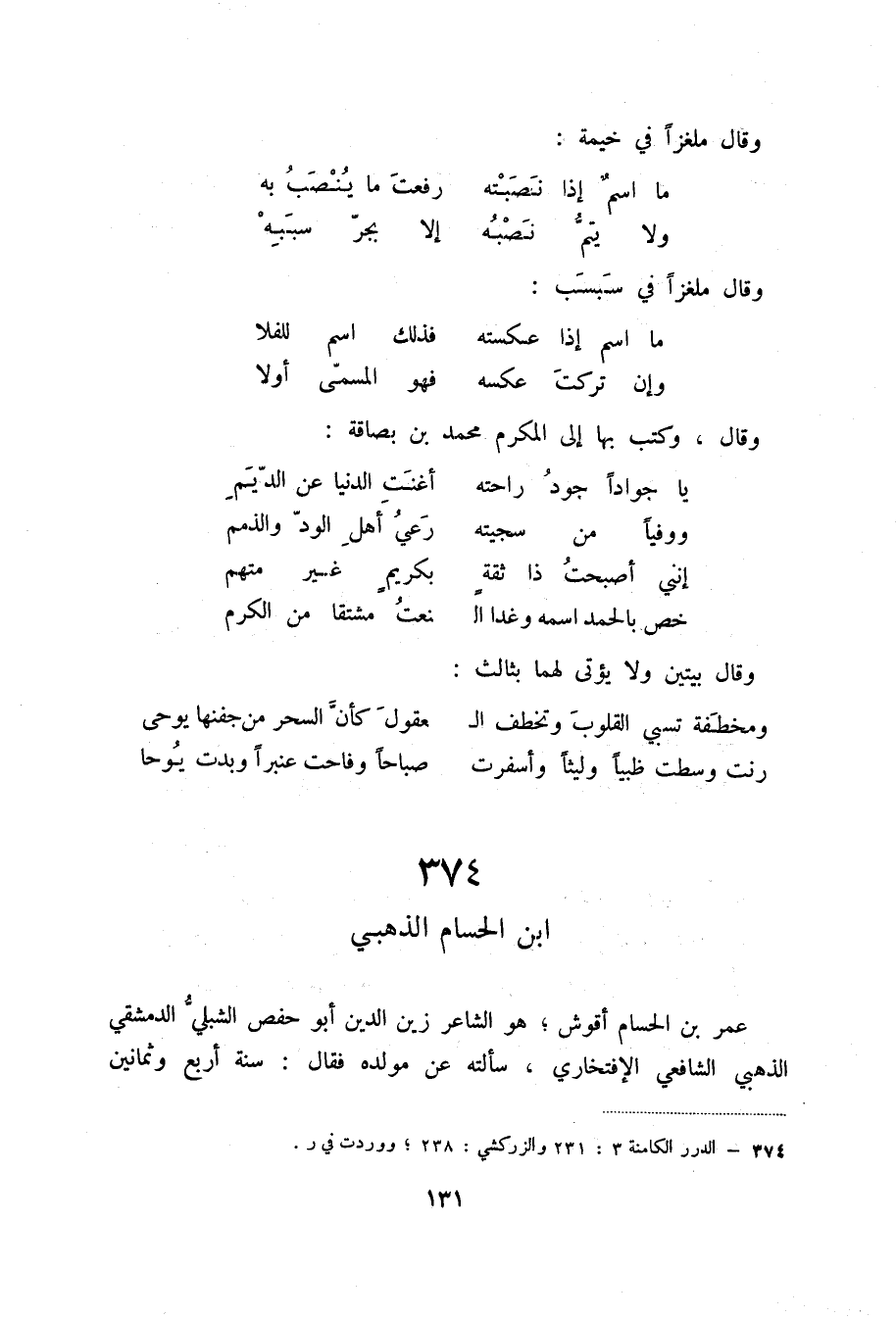 رنت وسطت ظبياً وليثاً وأسفرت ... صباحاً وفاحت عنبراً وبدت يوحا 374 (1)