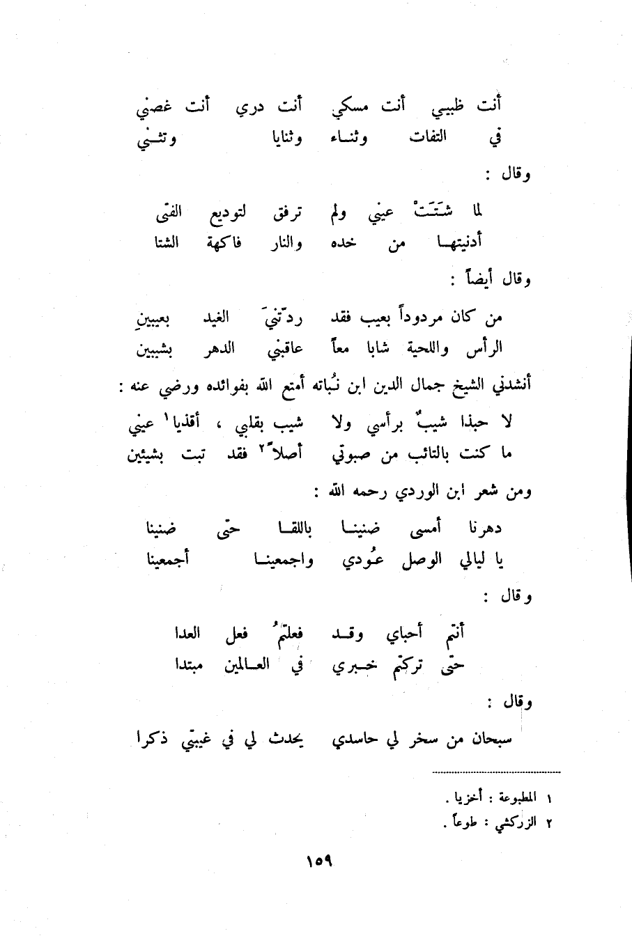 ما كنت بالتائب من صبوتي ... أصلاً (2) فقد تبت بشيئين ومن شعر ابن الوردي رحمه الله: