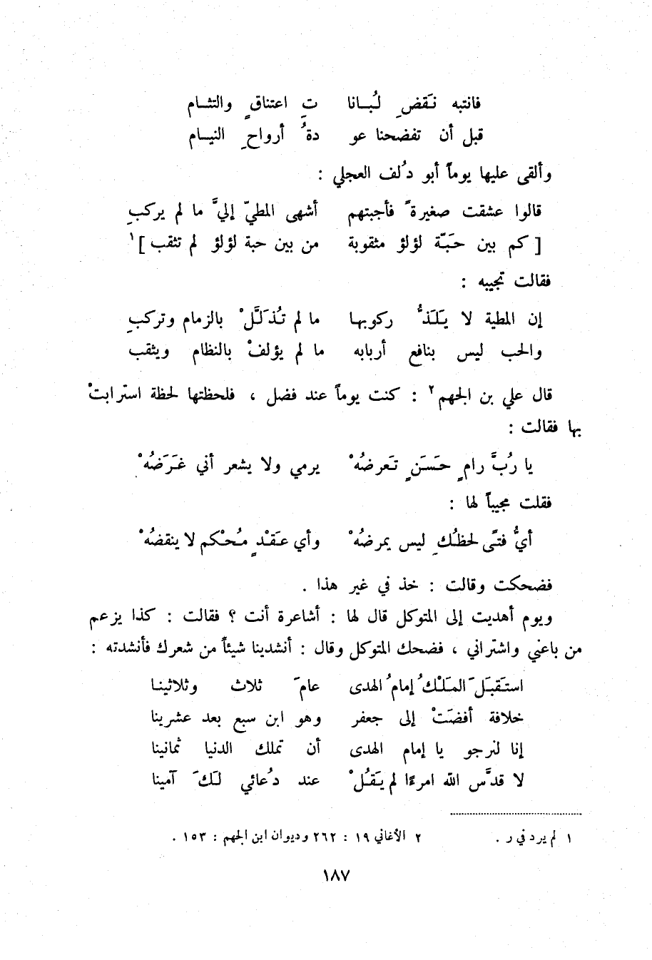(2) الأغاني 19: 262 وديوان ابن الجهم: 153.