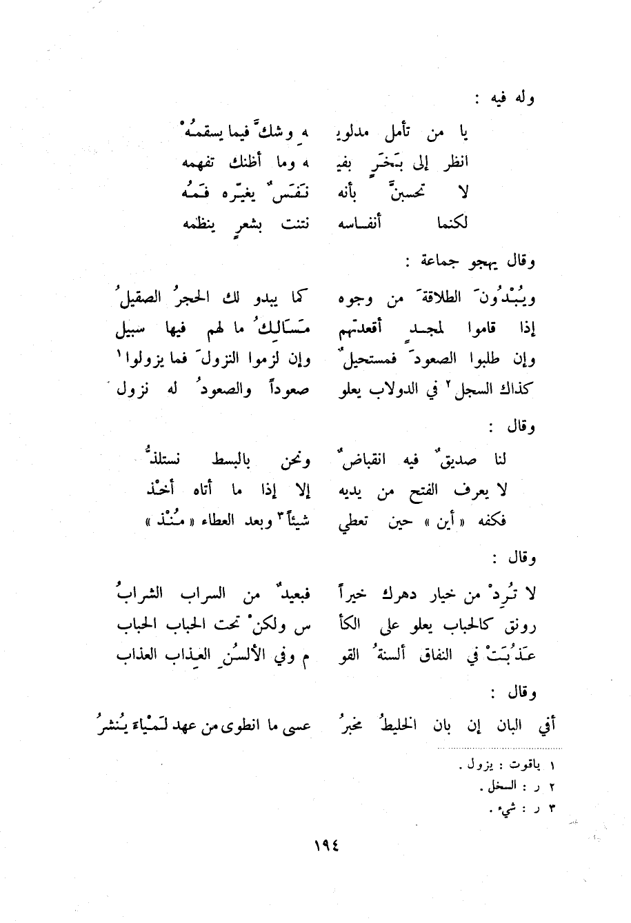 كذاك السجل (2) في الدولاب يعلو ... صعوداً والصعود له نزول وقال: