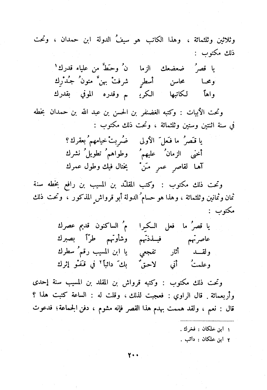 وثلاثين وثلاثمائة، وهذا الكاتب هو سيف الدولة ابن حمدان، وتحت ذلك مكتوب:
