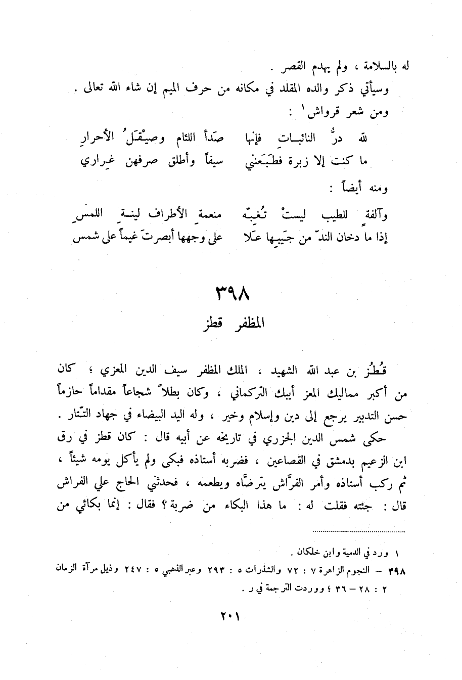 (2) النجوم الزاهرة 7: 72 والشذرات 5: 293 وعبر الذهبي 5: 247 وذيل مرآة الزمان 2: 28 - 36؛ ووردت الترجمة في ر.