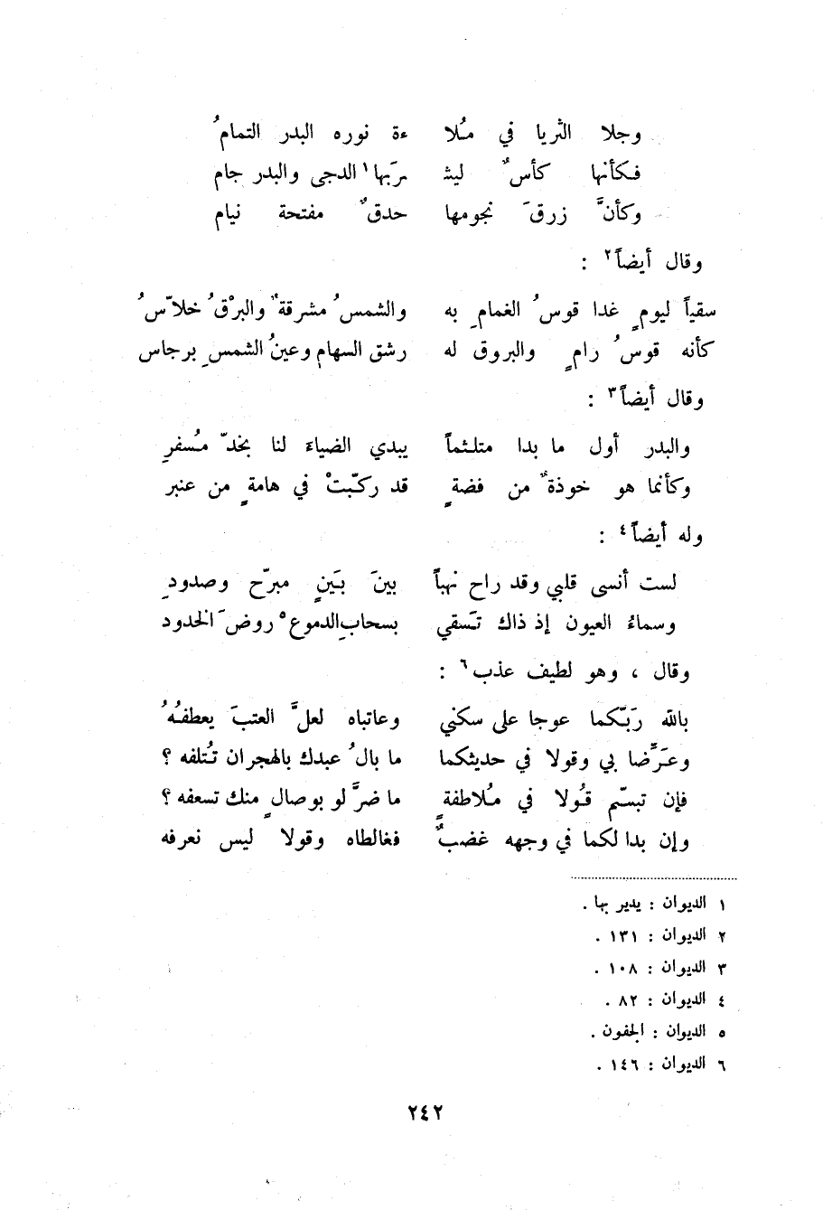 وسماء العيون إذ ذاك تسقي ... بسحاب الدموع (5) روض الخدود وقال، وهو لطيف عذب (6) :