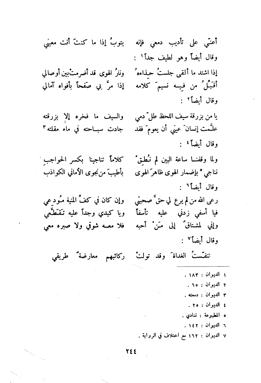 (7) الديوان: 162 مع اختلاف في الرواية.