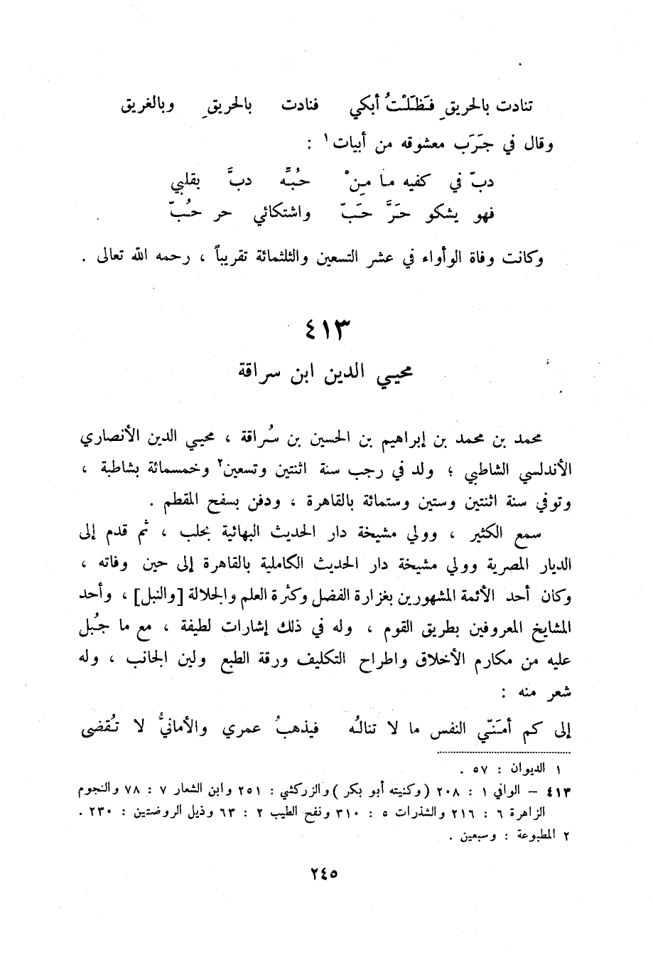 محمد بن محمد بن إبراهيم بن الحسين بن سراقة، محيي الدين الأنصاري الأندلسي الشاطبي؛ ولد في رجب سنة اثنتين وتسعين (3) وخمسمائة بشاطبة، وتوفي سنة اثنتين وستمائة بالقاهرة، ودفن بسفح المقطم.