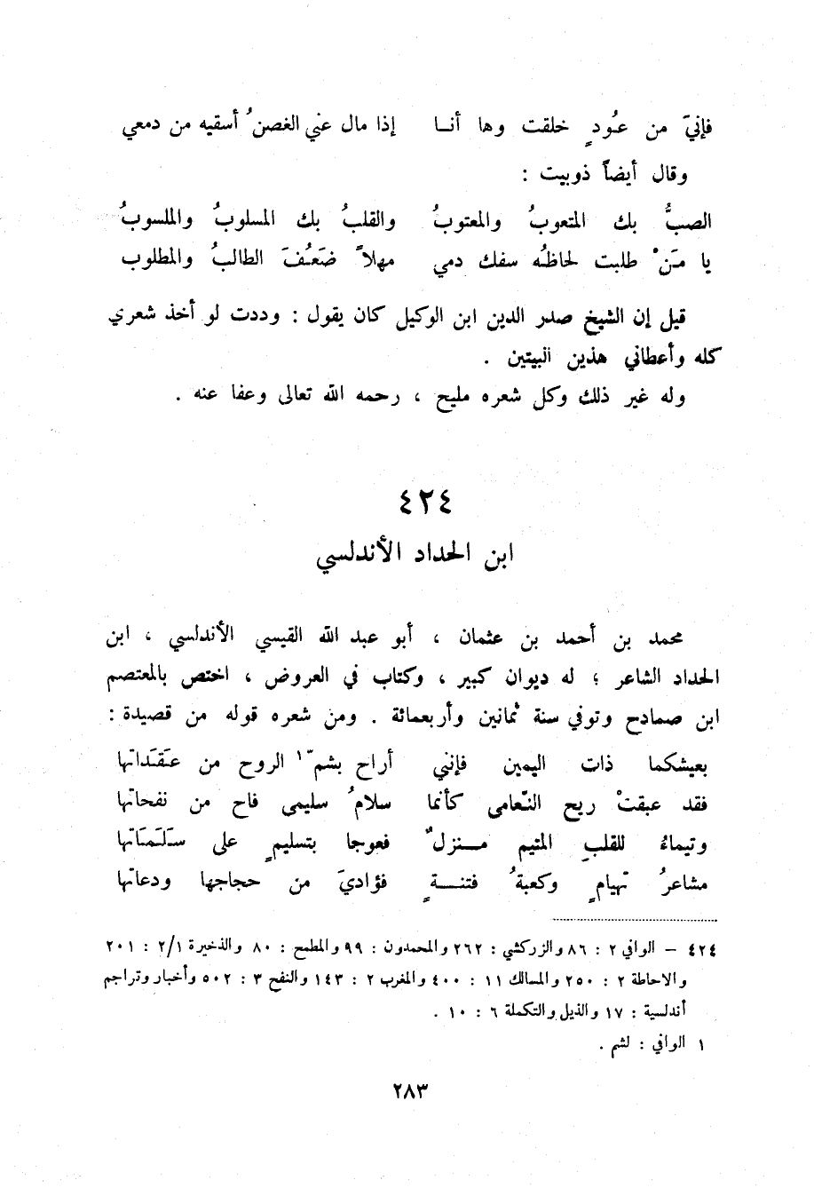 محمد بن أحمد بن عثمان، أبو عبد الله القيسي الأندلسي، ابن الحداد الشاعر؛ له ديوان كبير، وكتاب في العروض، اختص بالمعتصم ابن صمادح وتوفي سنة ثمانين وأربعمائة. ومن شعره قوله من قصيدة: