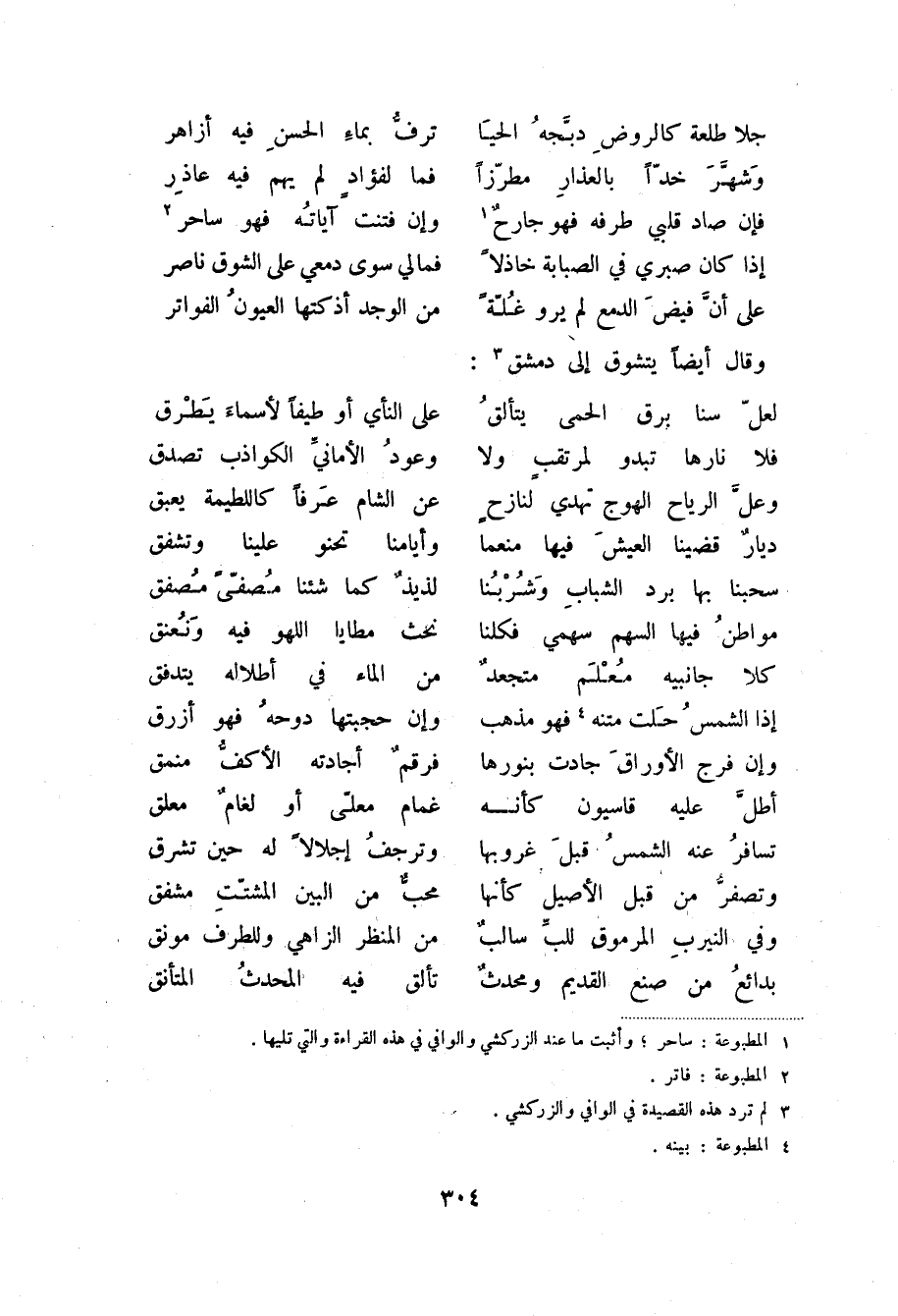 على أن يفيض الدمع لم يرو غلة ... من الوجد أذكتها العيون الفواتر وقال أيضاً يتشوق إلى دمشق (3) :