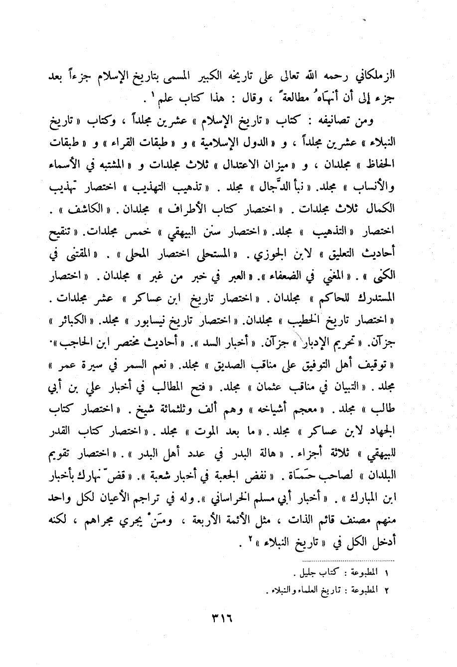 (2) المطبوعة: تاريخ العلماء والنبلاء.