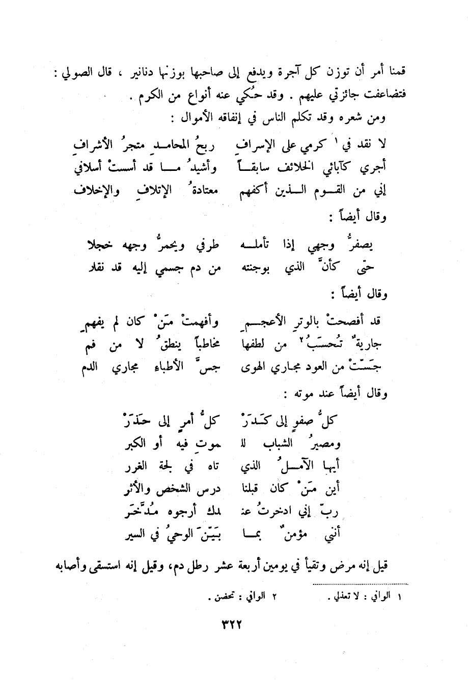 جست من العود مجاري الهوى ... جس الأطباء مجاري الدم وقال أيضاً عند موته: