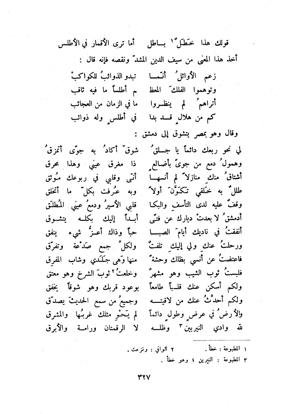 كم من هلال قد بدا ... في أطلس وله ذوائب وقال وهو بمصر يتشوق إلى دمشق:
