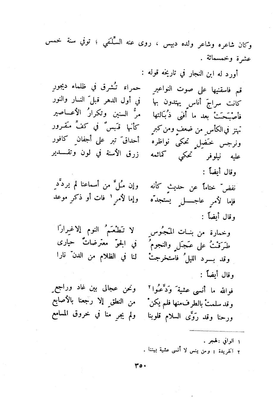 (2) الخريدة: ومن ينس لا أنسى عشية بيننا.